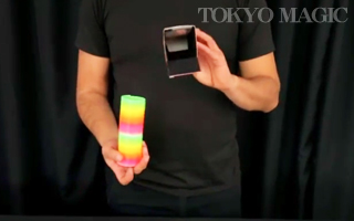 マジックスプリングを弾いて上から下に落とすと、色鮮やかな放物線やスプリングの幾何学的な動きで楽しめるおもちゃです。そのスプリングの中からカラフルなハンカチが出てきます。