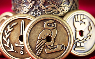 5枚の金貨(それぞれが「力」「忠誠」「知恵」「勇気」「名誉」という高貴な美徳を表す)が紐に通され、封印された小物入れの中に保管されています。