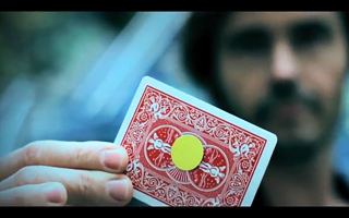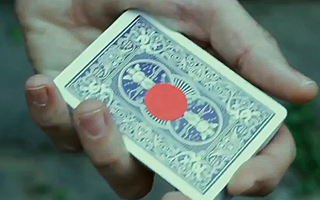 裏面に黄色のステッカーが貼られたカードから観客に自由に1枚を選んでもらい、それをデックに混ぜてシャッフルします。しかし、一瞬にデックのトップに浮き上がってきます。