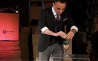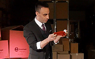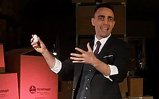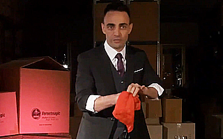1枚のシルクを見せ、左手に押し込みます。シルクに魔法をかけて、手の広げるとシルクはタマゴになって出てきます。