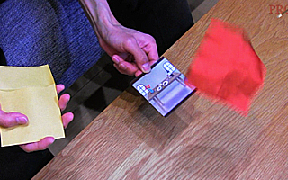 昭和・平成の国民的なお正月番組「スターかくし芸大会」で大人気となった「テーブルクロス引き」をイメージした「インスタントテーブルクロス引き」。絵の中から赤いクロスが飛び出してきます。目の前で見せられます。