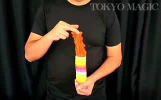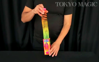 マジックスプリングを弾いて上から下に落とすと、色鮮やかな放物線やスプリングの幾何学的な動きで楽しめるおもちゃです。そのスプリングの中からカラフルなハンカチが出てきます。