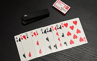 フィナーレでは、ホッチキスで留められた2枚カードを観客の手で押さえてもらうと、ホッチキスで留められた2枚のカードが1枚に融合します。 1枚のカードに2つの異なる面があり、元のホッチキスで留められたままです。
