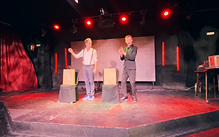 子供向けのマジックショーでは、ステージの片側にあるバッグにペンを入れると、反対側にある別のバッグからペンが飛び出します。