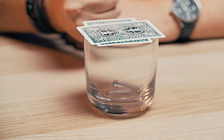 紙幣をグラスに落とし、コースターで覆います…すると、コースターがグラスから弾け飛びます。そして紙幣はマジシャンの手に飛び込みます。スマホをテーブルに置くだけで、いつでもどこでも奇跡を演じることができます。