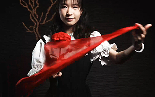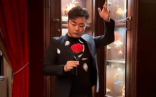 鮮やかなシルクスカーフをバラの花から出現させ、そのシルクで花を覆うと花の色が瞬時に変化します。