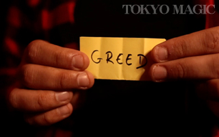 メモパットから外した予言を観客に渡して、観客自身にメモを広げてもらうと、予言はピタリ一致しています。カードをテーブルに1枚ずつフェアーに置いてゆき好きな所でストップをかけてもらいます。観客の意思で自由に選んだカードもメモパットに正しく予言されています。