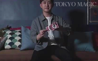 カードケースから1枚のカードを抜き出します。カードを指先につまんでよーく見せます。カードを上下に一振り、一瞬に腕時計に変わります。 チェンジはオートマチックでその過程は目に見えず信じられない程鮮烈です。 声を失う光速チェンジが目の前で起こり気付いた時は、カードはすでに時計です。