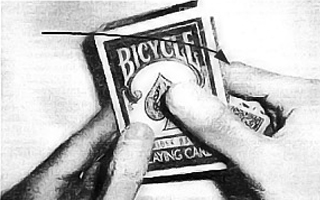 カードを密かに4つ折にする方法。カードケース、サイフ、封筒等から4つ折にしたカードが出現できます。カードを折る動作が流れるようにできるフォルディングです。